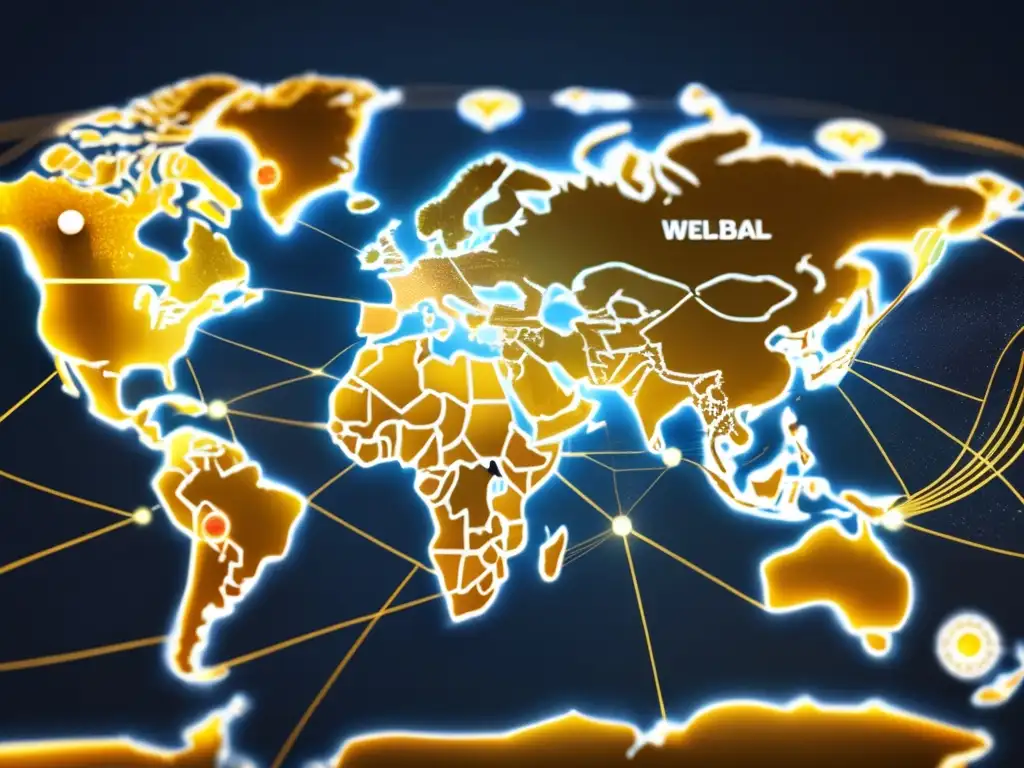 Un gráfico moderno de una red global interconectada, con colores vibrantes que representan la conectividad mundial