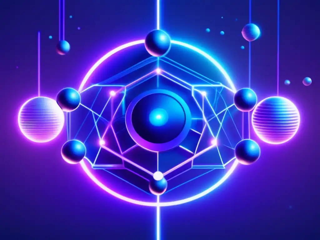 Un entramado futurista de líneas vibrantes y neon en un fondo oscuro, evocando avance tecnológico y conectividad descentralizada
